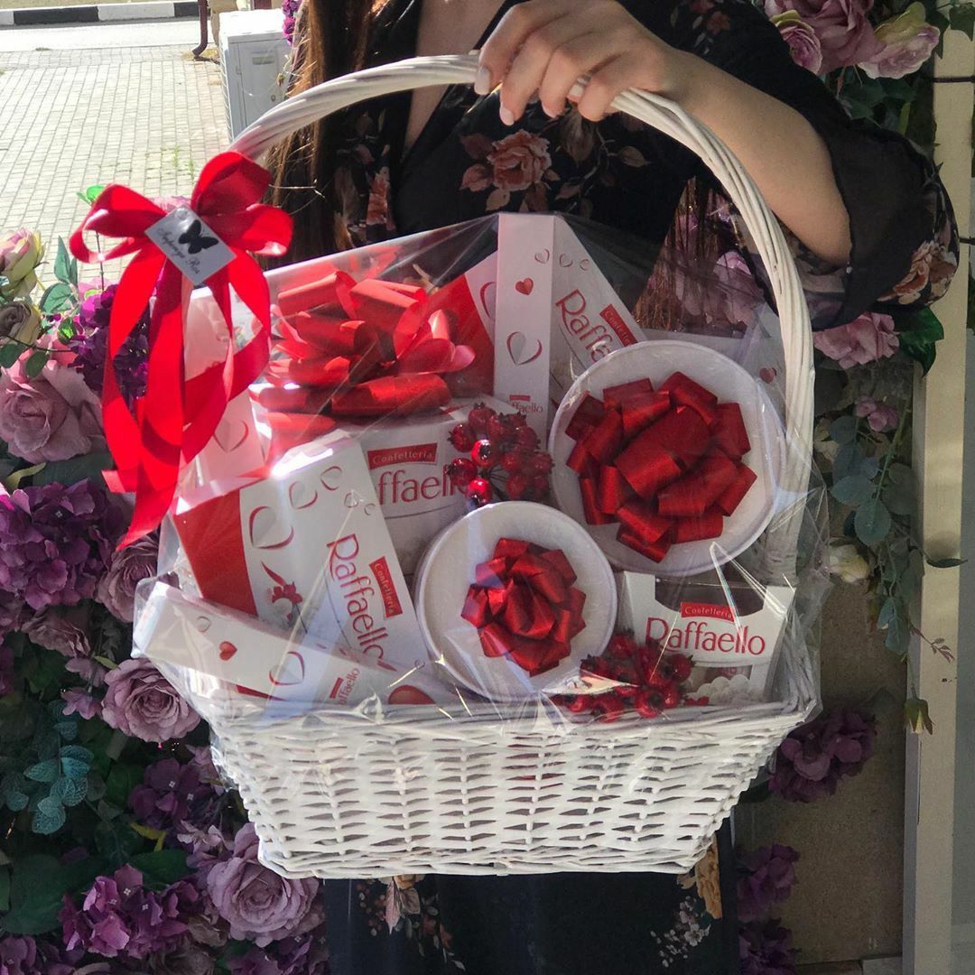 Корзина со сладостями «Raffaello» с доставкой по г Ленгер: вы можете купить подарок в интернет магазине «Цветоландия» по цене за 29500 тенге.